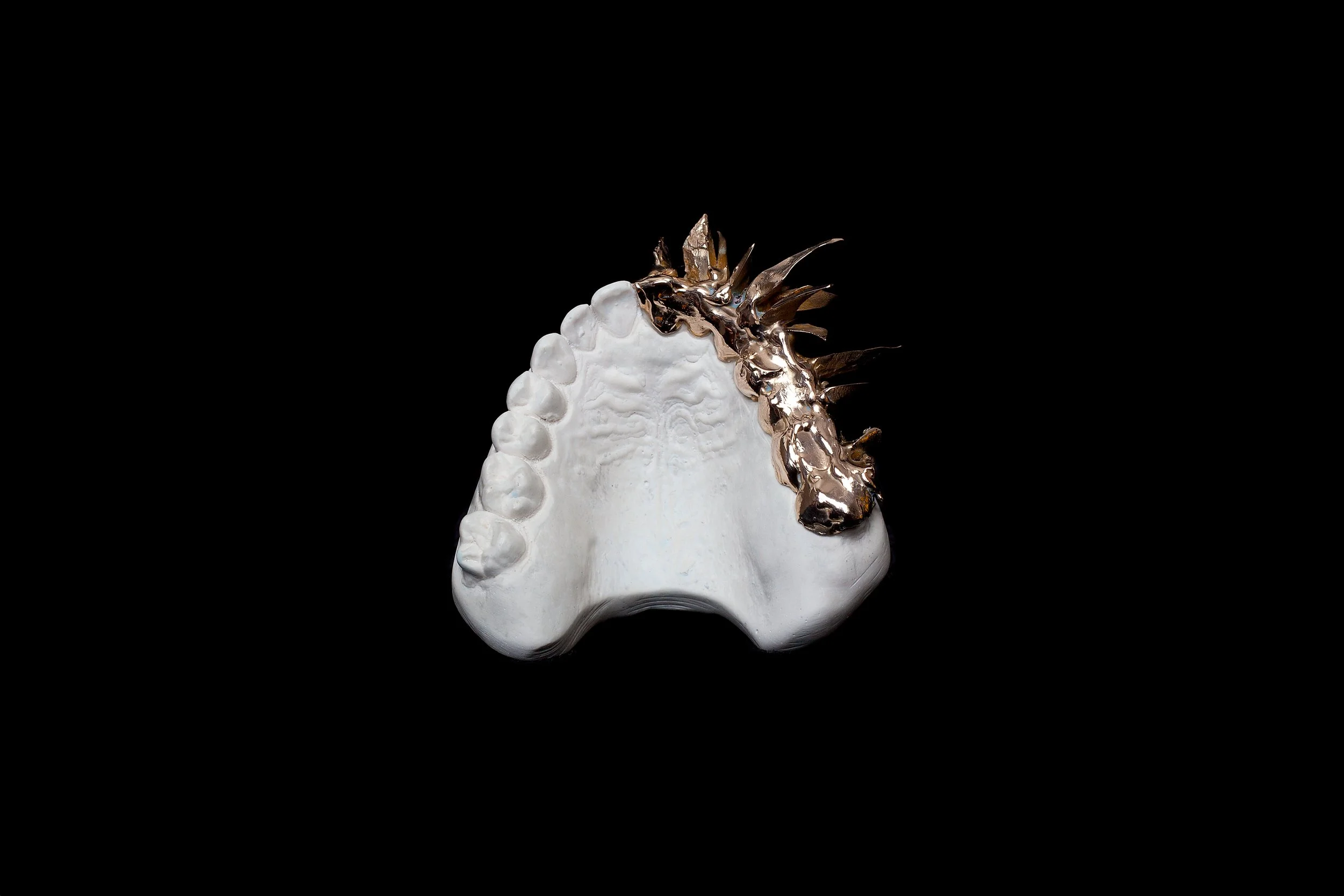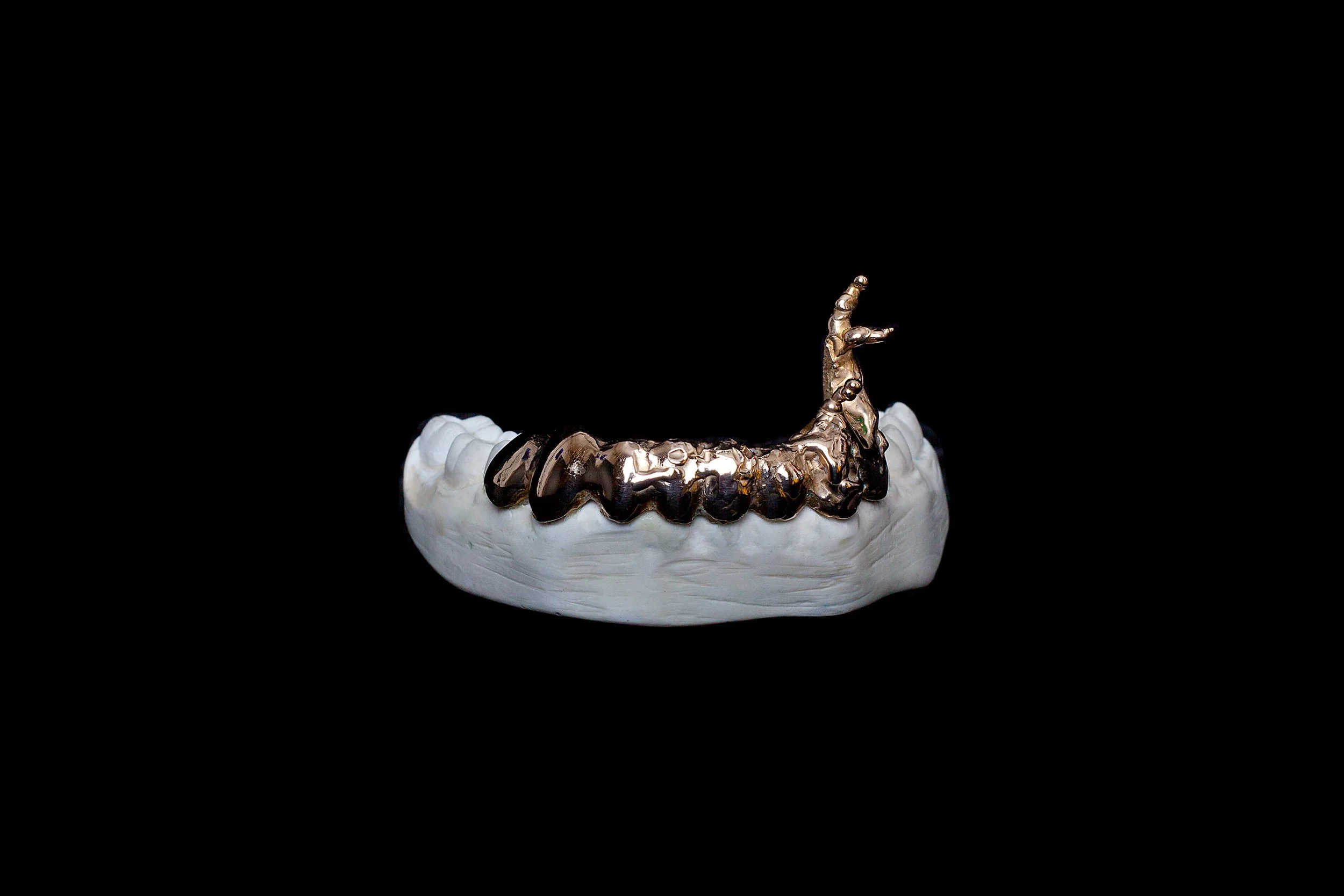 This series depicts the grill as an extension of the body—an appendage that carries identity, protection, and performance simultaneously. Raised in the American South, my relationship to the gold grill is not observational; it is lived. I wore a grill as a teenager in the early 2000s, where it functioned as a marker of cultural alignment. It was never neutral decoration. It was armor and ceremony.