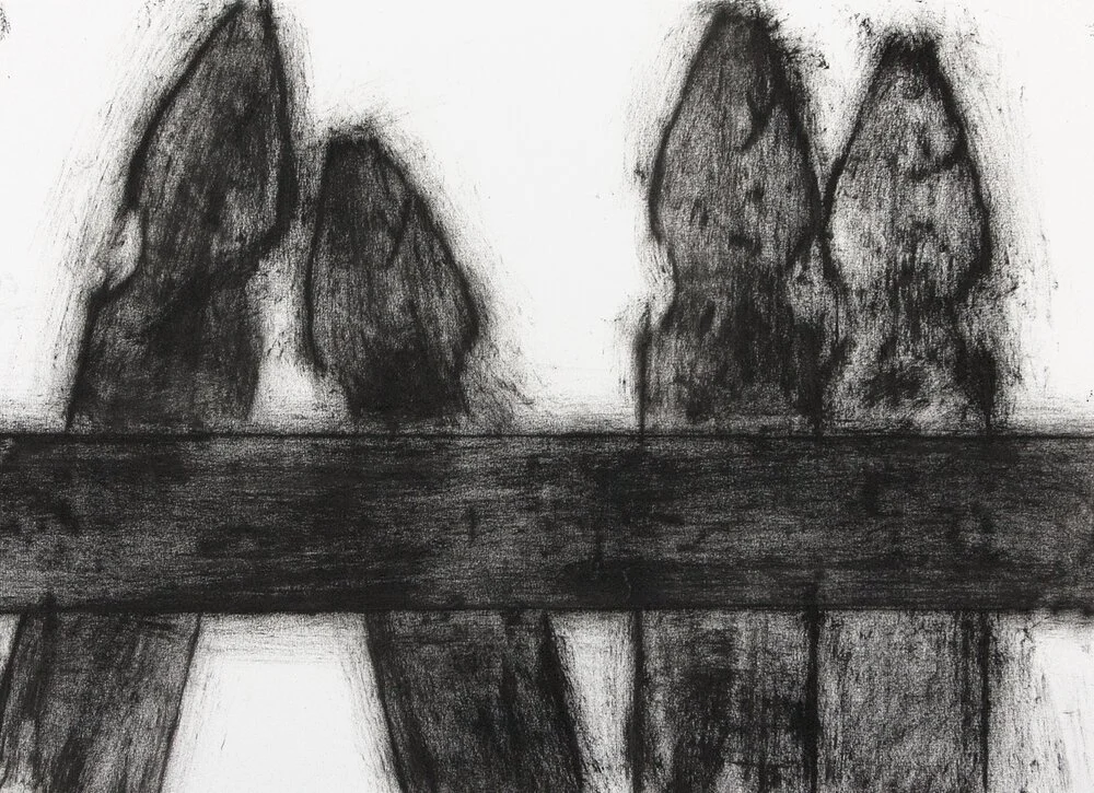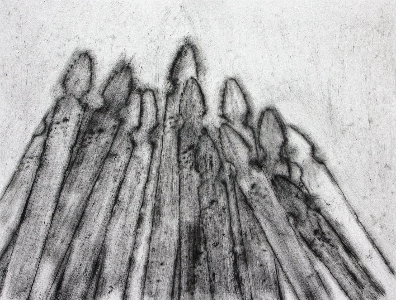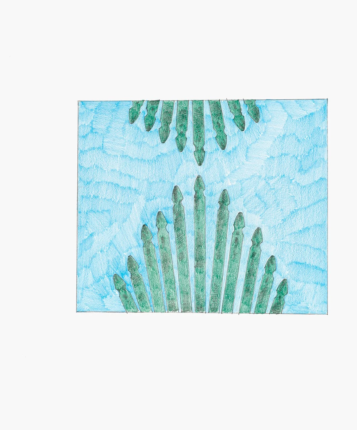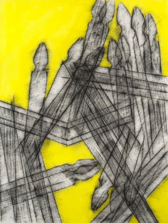 The exhibition brings together studies ranging from small-scale drawings in colored pencil, ink, and pigment to larger, more complex compositions rendered in acrylic. A unique rubbing technique produces delicate, charcoal-like surfaces that emphasize variation, resulting in distinct textures across works made from the same wooden picket.